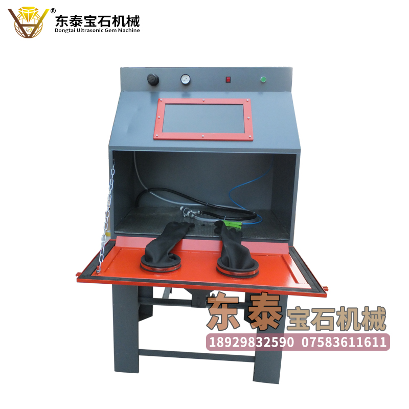 功能:东泰超声波宝石机械生产的喷砂机,主要用来对宝石产品表面进行打磨处理,把宝石产品表面处理光滑和带有磨砂效果,操作简单,使用方便。内镶嵌玻璃板,外包围胶垫,密封性更强,透视性更佳。内舱除尘枪用于内舱内部清洁,镜面清洁包括产品表面清洁,吸尘效率高,舱内渣滓无残留,提高工作效率。