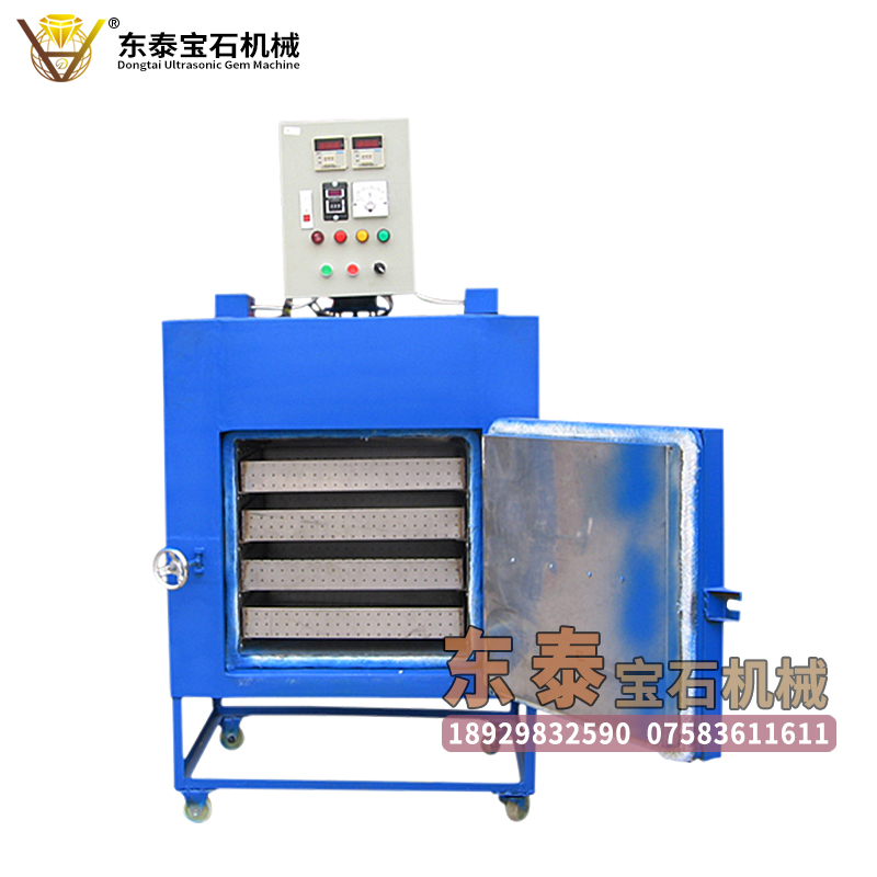 功能:东泰超声波宝石机械生产的宝石专用烤箱,针对宝石加工加温需要,采用更好的隔热,温控系统,使机器在加热的过程中整体温度更均匀,烤胶效果更好。机器加多隔层,一次工量大,在机器左右各有一个风扇,可以根据烘烤情况进行排除水分。