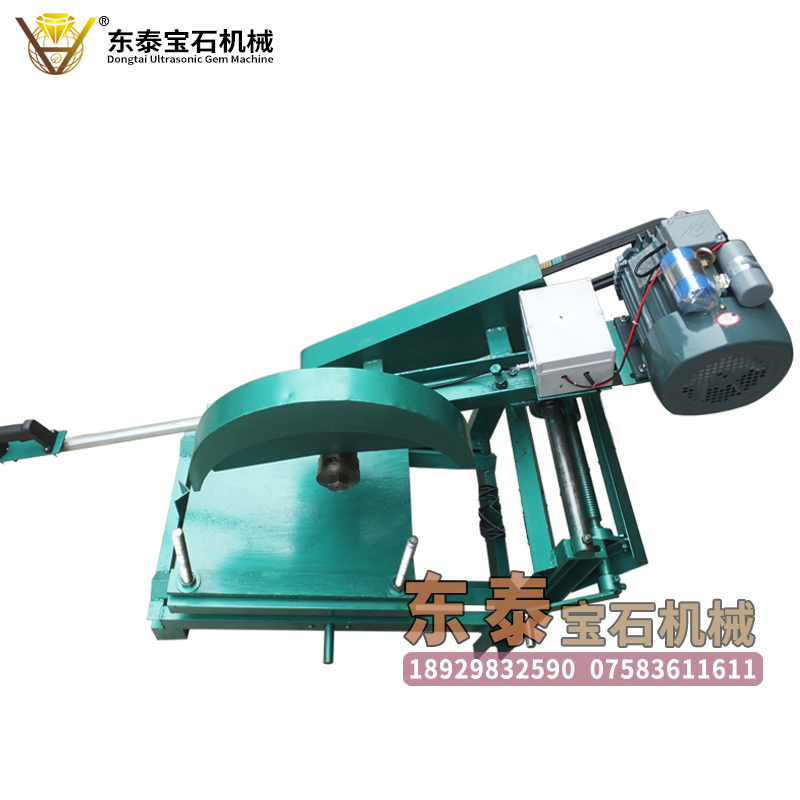 功能:东泰超声波宝石机械设备生产的大型宝石开料机,经过改进,1、增加了行程轨道和右拉杆,使在切割宝石原料时,工作平台前进后退方便简单快捷,既可以定点切割,也可随时在切割过程中前后移动,加快宝石切割速度和切割行程长度,2、选切方便,增加了石料固定卡板,在生产过程中更加安全稳定。3、切割安全高度限定,可以确保将石料切开,也确保刀片不会切割到工作台上。4、右手轮调节移动机器刀片左右移动,进行切割宽度调节方便。5、使用东泰定制宝石机械专用电机,使用力度大,节省电力,使用寿命长,6、使用优质轴承,机器运行平稳,切割精度好,使用寿命长。7、适用于切割50cm以内的宝石原料,石料可在切割台上前后左右移动,最大可以装载24英寸(60cm)的刀片,根据不同需要,可以用不同刀片。8、增加手柄式弱电开关,使用方便,按压开关时机器工作,放松开关时机器断电停止工作,手柄电压采用24V低压电,安全可靠。