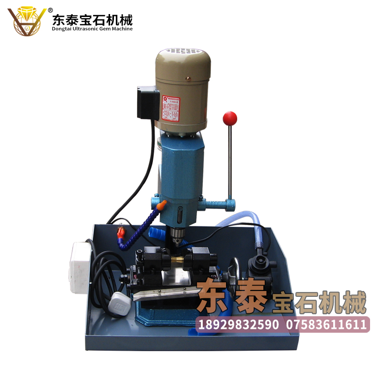 功能:东泰超声波宝石机械生产的台钻打孔机,可以用于高硬度的玉石圆珠进行钻孔,自带夹具,打孔精度高,可单向或双向打孔,转速为调节皮带轮进行调速,电机力度大,加工速度快,适用范围广,操作简便。打孔深度为0MM—20MM,使用改装过的夹头可以打圆珠、米珠类产品。