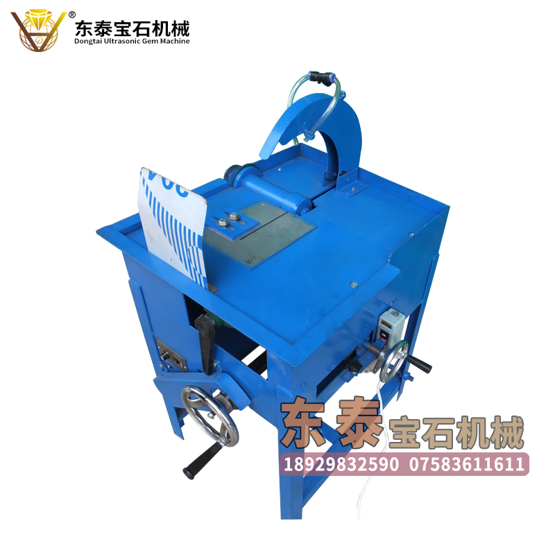 功能:东泰超声波宝石机械生产的自动小切机,结合了小切机和油切机的功能,一机两用,需要进行普通切割时,就把主板盖好,机器就可以当主轴在下小切机使用,进行普通石料切割,当需要进行标准开小片时,就可以把主板去掉,用下面的夹具,夹好石料,机器设有自动进刀和手动进刀两种方式,使用时根据实际情况,可以手动进刀也可自动进刀,这样开出来的片标准,和油切机一样效果,解决了开小片不准的情况。机器设有限位保护,机器切到最大限定位置后自动停止,以保护机器及工作安全。自动小切机方便,实用,简单。