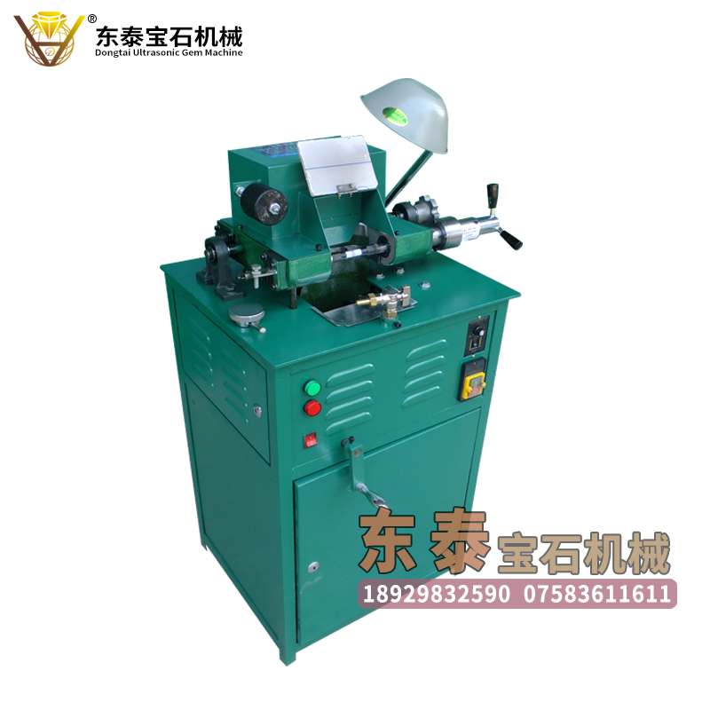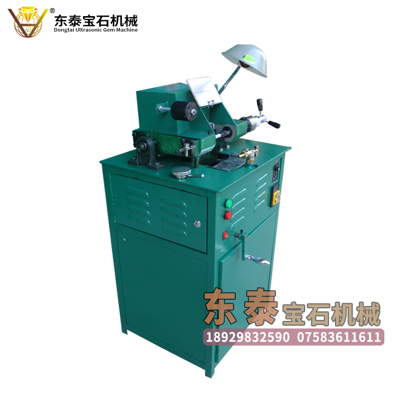 功能:东泰超声波宝石机械生产的无级变速定型机,可随生产需要进行调节工件夹头速度,达到精度加工目的。采用进口调速马达,速度稳定,力量大,主轴经过热处理增强其硬度及耐磨度,使用优质轴承使机器精度极大的提高及寿命增长。可以加工玉石、水晶杂石、玛瑙、独玉、岫玉、玻璃、各种半宝石、其他石类及贝壳、骨头化石等.1.可根据需要在加工过程当中任意调速,成型效率高;2.使用成型砂轮,规格标准化精度高,可加工任何旋转体形状,如圆型、椭圆型、 水滴型、八角型、三角型、盾型、葫芦型、梅花型号等,可加工各规格圆珠、米珠、鼓珠、健身球、戒指、扳指、手镯、象棋、围棋、玉石枕、垫等上百个品种、上千种规格;3.可加工螺旋型 4.加工效率高,一台成型机八小时可以生产约3000个工件.