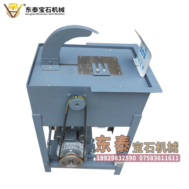 功能:东泰超声波宝石机械设备生产的小型切割机,使用优质轴承,使用过程中噪声小,平稳,安全;主要用于各类宝石切割,使用简单、方便。根据客户要求可配置安全防尘罩,实用性强,经济实惠;还可以根据客户的不同需求可以配置不同型号切割机,常规标准配置可装6、8英寸刀片,加大型号可装10英寸刀片,最大型号可装12英寸刀片。常用切割部分加多不锈钢板,使机器切割时更平滑,不锈钢台面磨损后易于更换。加长加厚卡板,主要用于切割片料和切割标准尺寸产品,调整好尺寸后,切割产品更精准,使用东泰宝石专用电机,同等功率电机力量更大,使用更省电,寿命更长。