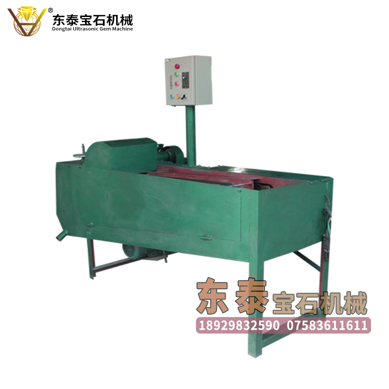 功能:东泰超声波宝石机械生产的自动拉条机是专业生产大批量圆珠系列之一,采用传输带运送片料,将片料一次性切割成条形,生产批量大,省人力,操作简单。自动拉条机采用优质轴承和传输带,使用优质调速马达,可以根据实际生产要求进行调节快慢速度,达到合理使用机器设备。机器增加前进和后退两个档位,可以对传输带随时调节前进和后退,可以在工作中随时调节状态,安全性更高。自动拉条机轴芯长20CM,上可安装10─25片八英寸刀片,根据客户生产要求调整,尺寸由3mm圆珠方粒至16mm圆珠方粒皆可用此机器加工,生产效率高。
