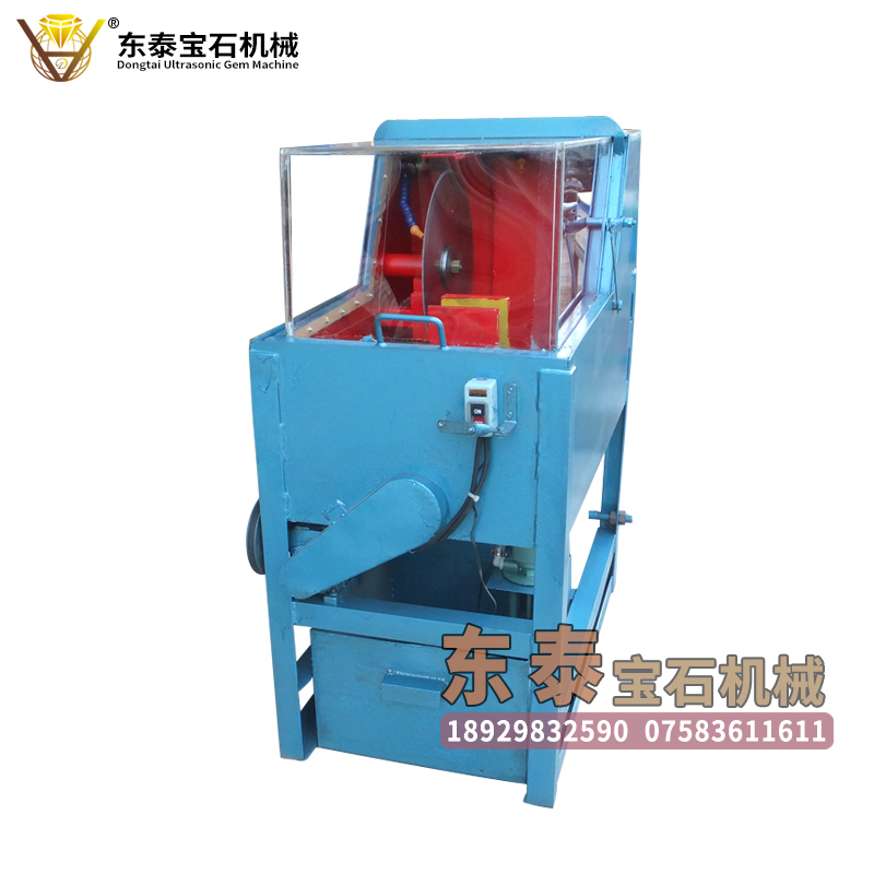 功能:东泰超声波宝石机械生产的自动型单刀密封油切机,采用优质轴承和轨道,切割宝石原料精度高,切割速度快,使用自动进刀和行程控制开关,安全可靠,只需要将宝石原料固定好在机器的工作台上,定准机器行程开关距离,机器在完成切割后,可自动停机,机器在运行过程中无需进行其它操作,一人可以操作5-6台,机器加有防护罩,使用过程中,安全、噪声小,无污染。采用油泵循环供应冷却润滑油,节省耗材,降低成本。