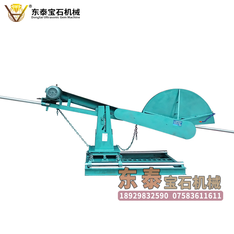 功能:东泰超声波宝石机械生产的大型切割机,使用优质轴承,加厚钢板,使用过程中噪声小,运行平稳,移动安全,使用加粗安全链条,定位准确,能更好的保护刀片及机器设备,机架部位双轨道平稳易于前后移动,切料方便调节机器前后,可以切割的距离更长,在加厚主支架上有三个高低位置可以调节,可以根据石料的大小进行调节高低,切割的尺寸更大,在机器的底部安装有四个移动轮,这样更方便机器的移动调整,可以石料不用动,把机器移动到需要的位置。60英寸大水切主要用于各类宝石切割、开料,使用简单、方便。常规标准配置可装60英寸以下的锯片,内孔为36mm,刀片直径1.5米,切割半径达到70厘米。