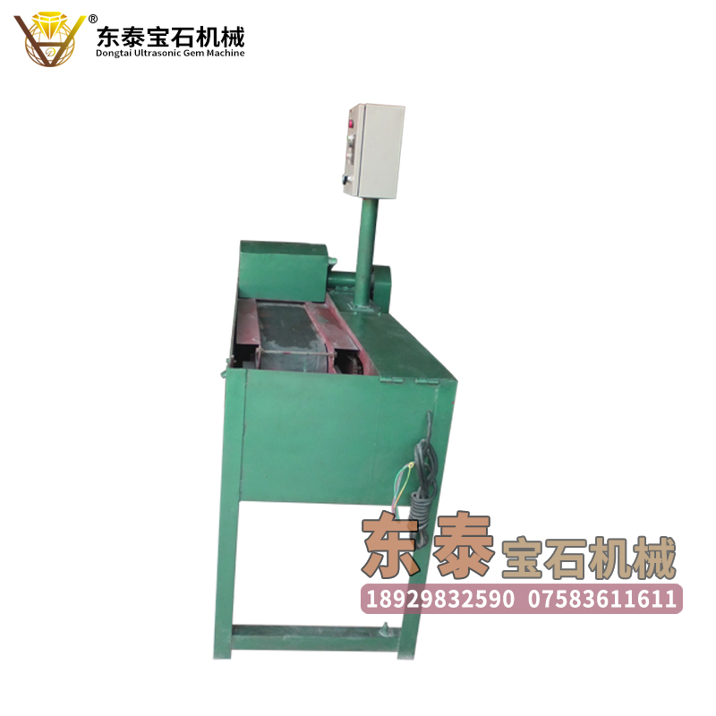 功能:东泰超声波宝石机械生产的自动切粒机,采用进口调速马达,功率大,性能好,采用调速马达,可以调节生产时传输带送料的快慢速度,控制生产速度及控制生产质量,根据不同宝石材料进行调整,达到最佳生产效果,降低生产成本。本设备采用单板条道,有不同规格条板,根据生产不同大小产品而定,使生产出来的宝石方粒,粒粒方正质量高,次品少,效率高。