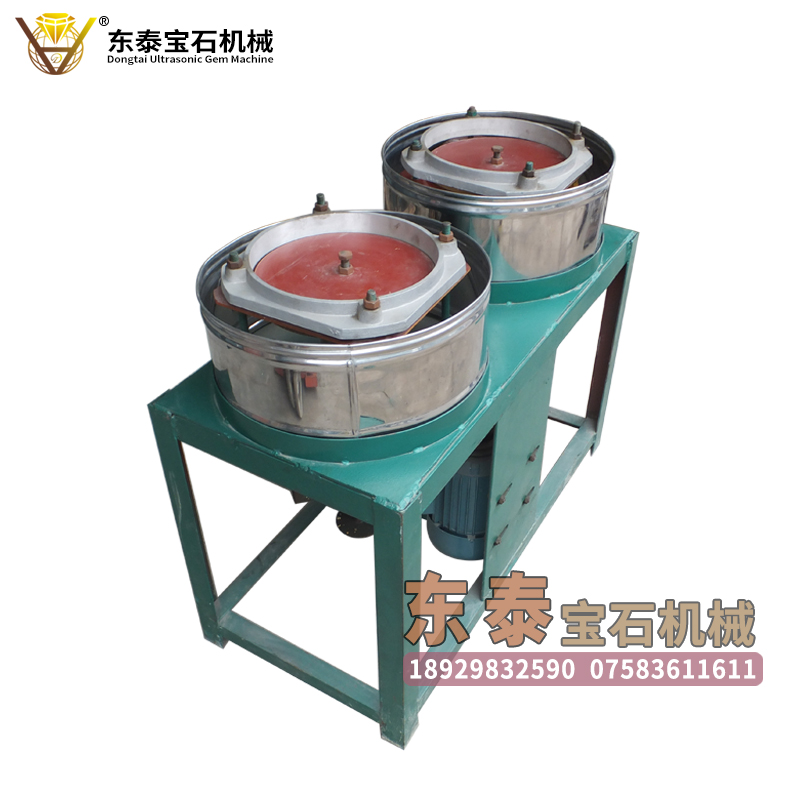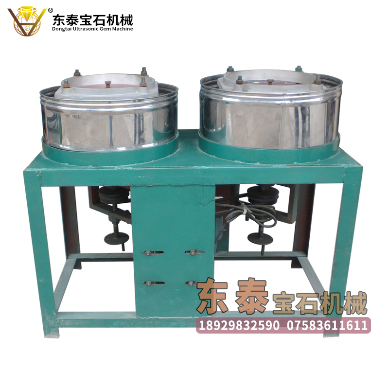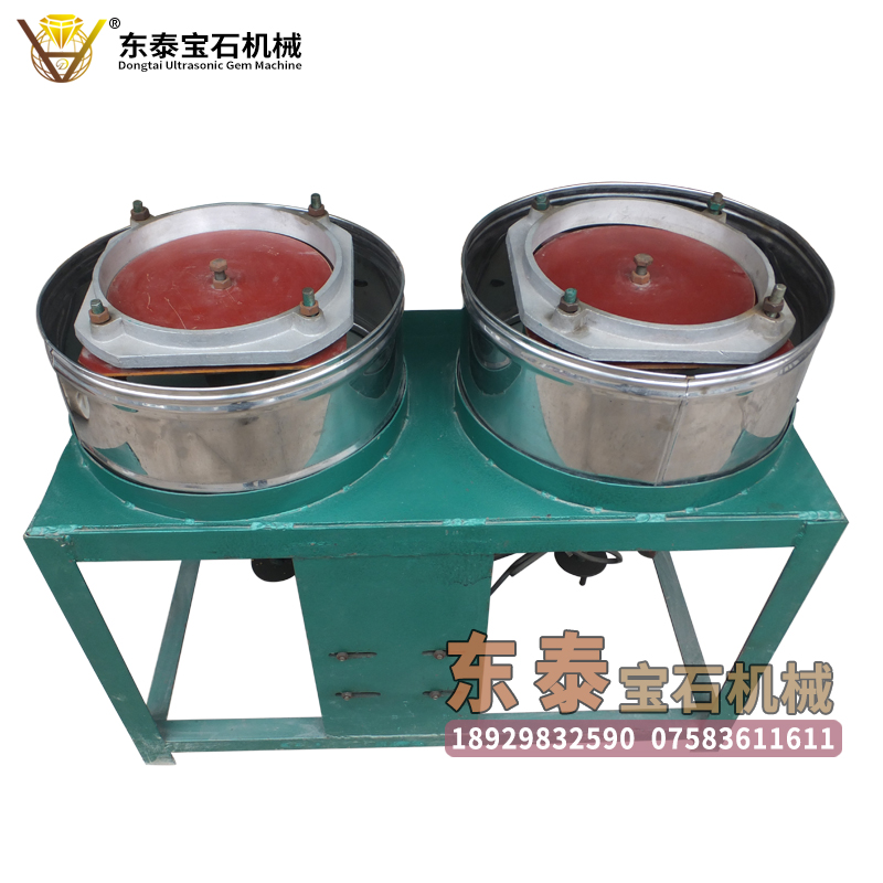 功能:东泰超声波宝石机械生产的双盘中盘机主要用于软料加工抛光,如琥珀,碧玉、青金等,采用小平盘,顺沟中筛板,加工产品速度快,不易变形,出货成品率高,用于震桶不能抛光的产品,出产品效果好。