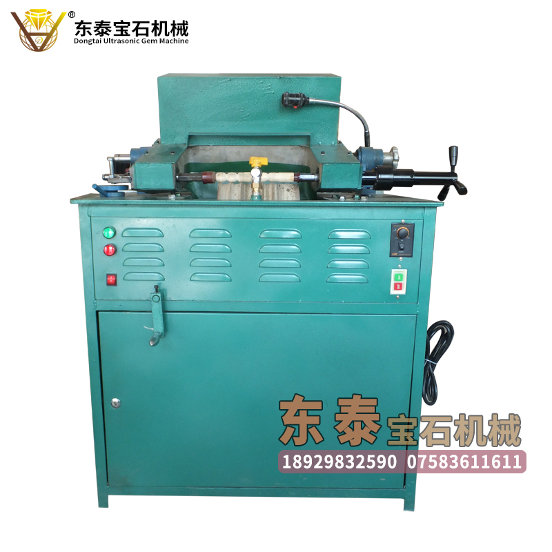 功能:东泰超声波宝石机械生产的大款无级变速定型机,可随生产需要进行调节工件夹头速度,达到精度加工目的。采用进口调速马达,速度稳定,力量大,主轴经过热处理增强其硬度及耐磨度,使用优质轴承使机器精度极大的提高及寿命增长。可以加工玉石、水晶杂石、玛瑙、独玉、岫玉、玻璃、各种半宝石、其他石类及贝壳、骨头化石等.1.可根据需要在加工过程当中任意调速,成型效率高;2.使用成型砂轮,规格标准化精度高,加工各规格圆珠、米珠、鼓珠、健身球、戒指、扳指、手镯、象棋、围棋、玉石枕、垫等上百个品种、上千种规格;3.可加工螺旋型 4.加工效率高。